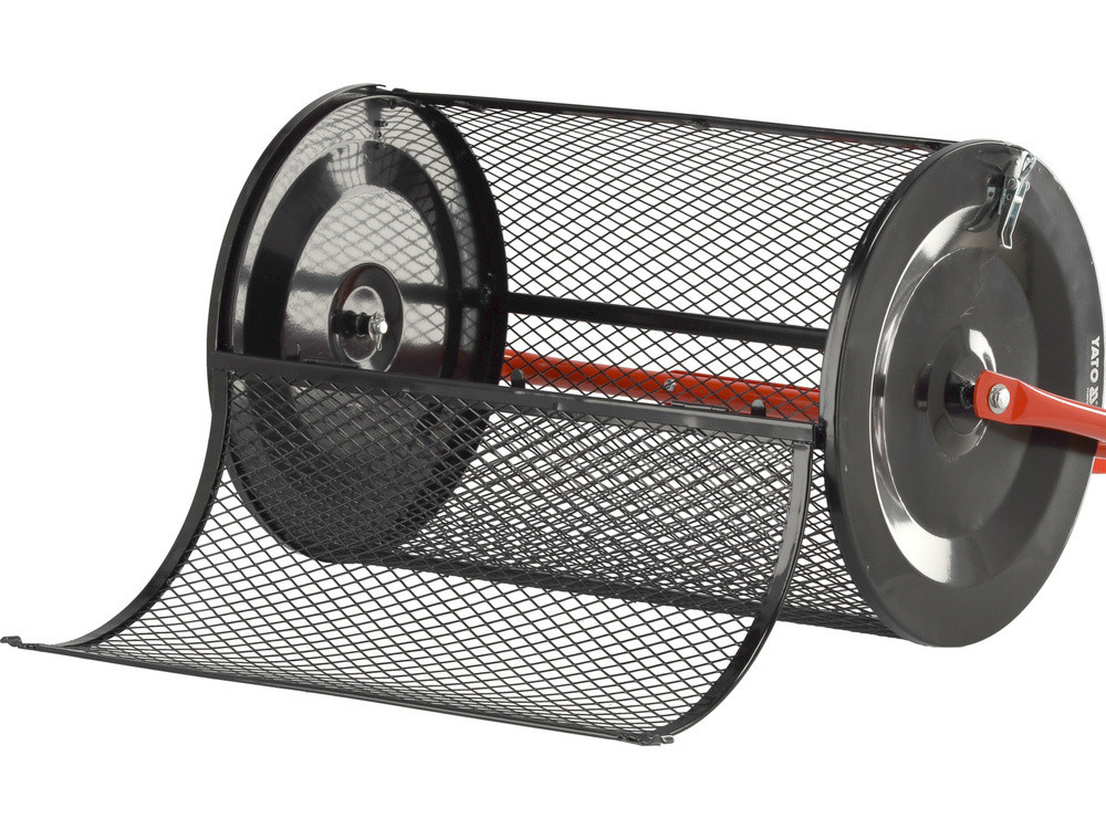 YATO YT-86763 Hálós henger talaj, homok, vetőmaggal vagy műtrágyával kevert talaj kiszórására. Fűvetés utáni szintezésre is használható. A görgő acélból készült. A feltöltés a dobon található ajtón keresztül történik. A teleszkópos fogantyú a csatlakozásnál két acélcsővel van megerősítve. Hőkezelt felület, porszórt. PVC bevonatú fogantyú.
