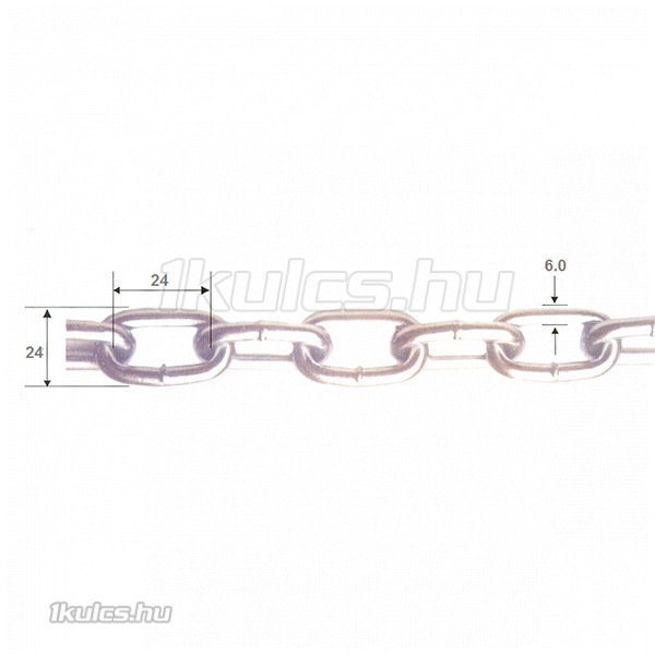 6 mm láncszem vastagsággal rendelkező horganyzott lánc. Folyóméterre vásárolható, az ár 1 folyóméterre vonatkozik.